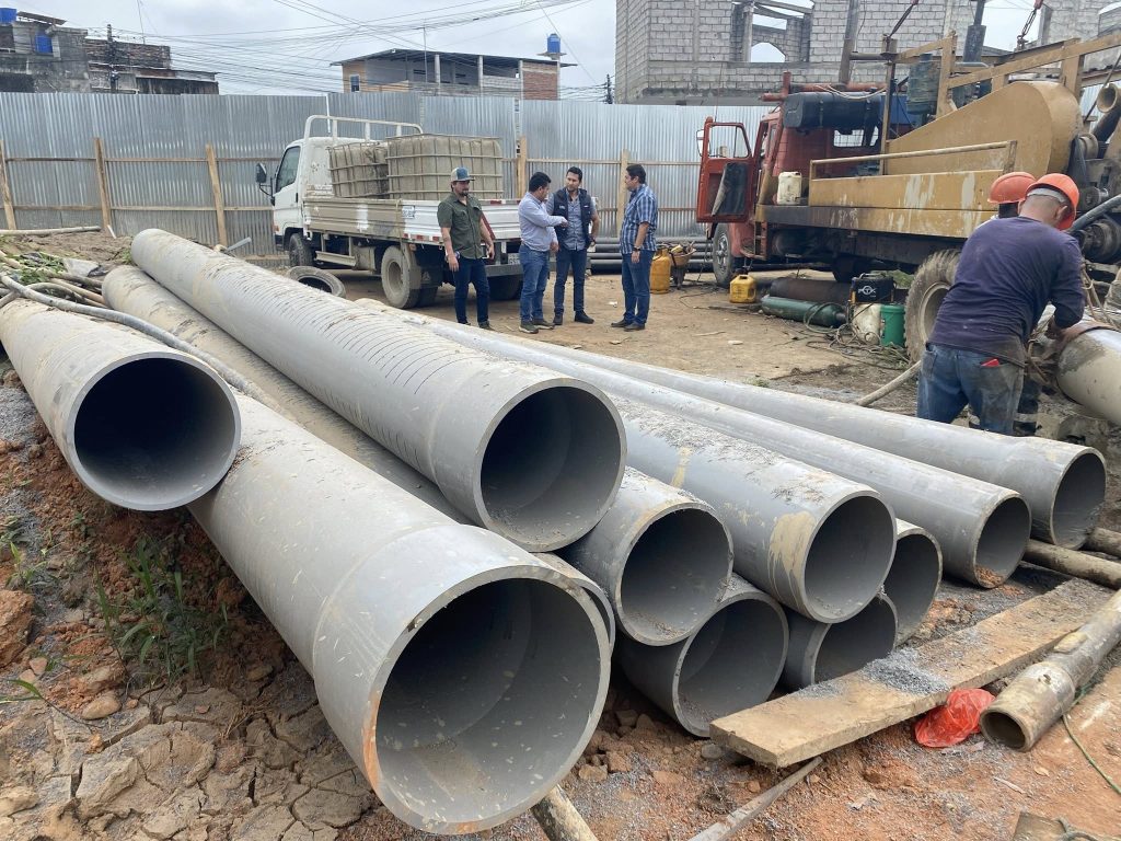 Actualmente, se trabaja con tubería PVC de 14 pulgadas de diámetro, cada una con una longitud de 6 metros. La intervención contempla una profundidad total de 102 metros, lo que permitirá incrementar significativamente la eficiencia y capacidad del sistema de abastecimiento de agua potable para las familias del sector.