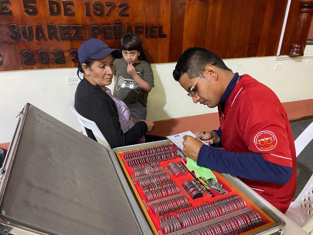 Como parte de esta brigada, se realizó la donación de lentes de lectura para personas de la tercera edad y con dificultades visuales. También se ofrecieron lentes permanentes con el 50% de descuento, facilitando el acceso a herramientas ópticas fundamentales para el desempeño diario de los beneficiarios.