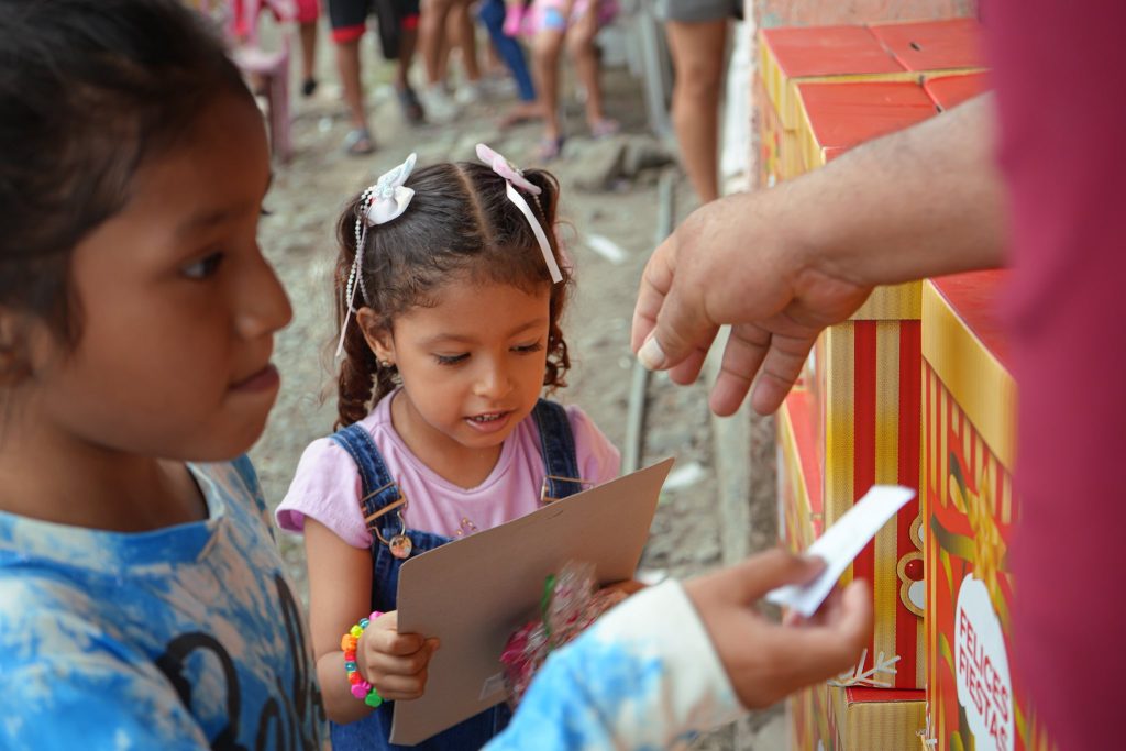 Niños, jóvenes y padres de familia participaron en un ambiente lleno de gratitud y entusiasmo, recibiendo estos presentes que representan esperanza y unión comunitaria.