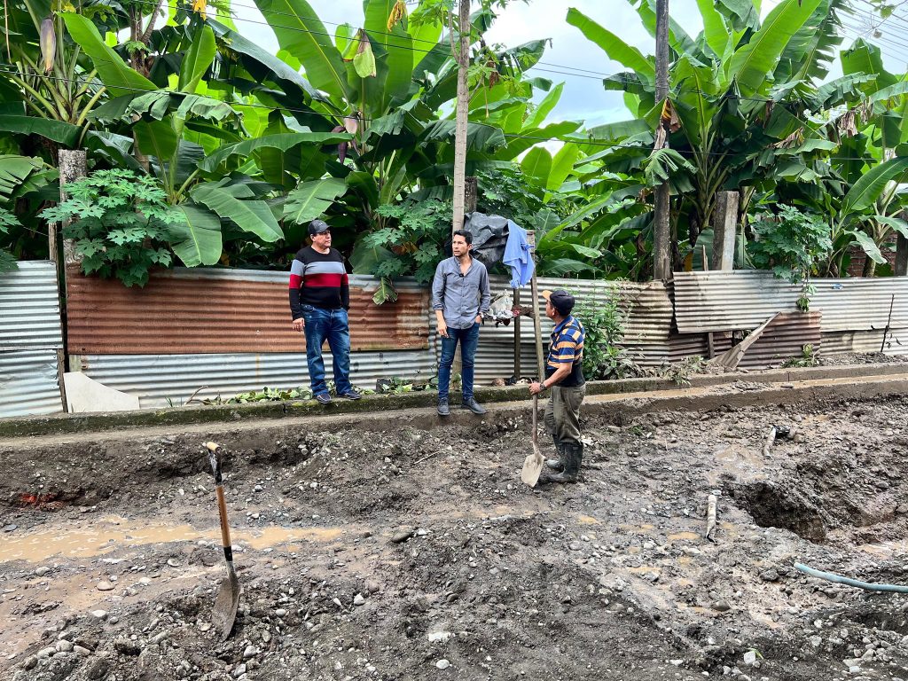 El alcalde del cantón, Dr. Cristian Suárez, acudió personalmente al lugar para supervisar los avances. Durante su visita, destacó que esta intervención en esta calle previo al asfalto integral.