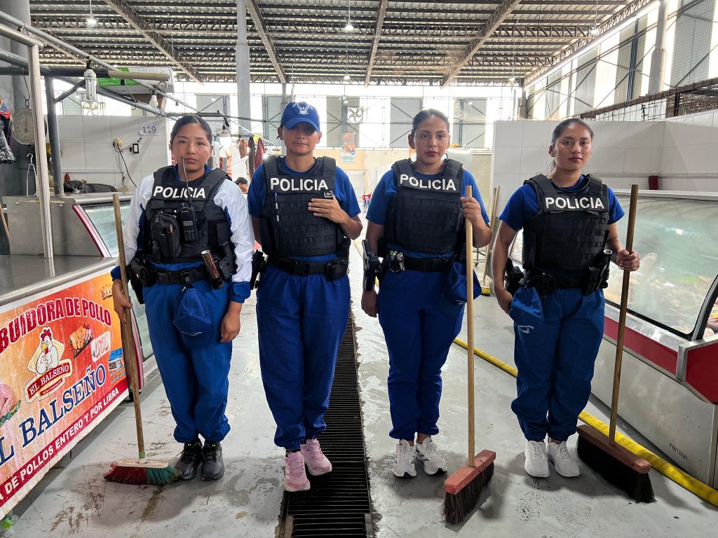 Mediante el trabajo en conjunto, entre la Comisaría Municipal y POLCO (Policía Comunitaria), llevamos a cabo una exitosa minga de limpieza en el interior del Mercado Municipal.