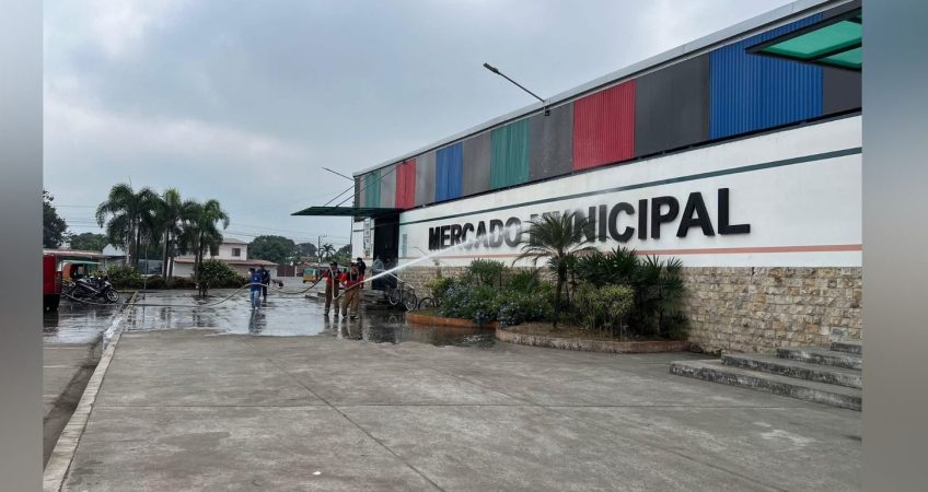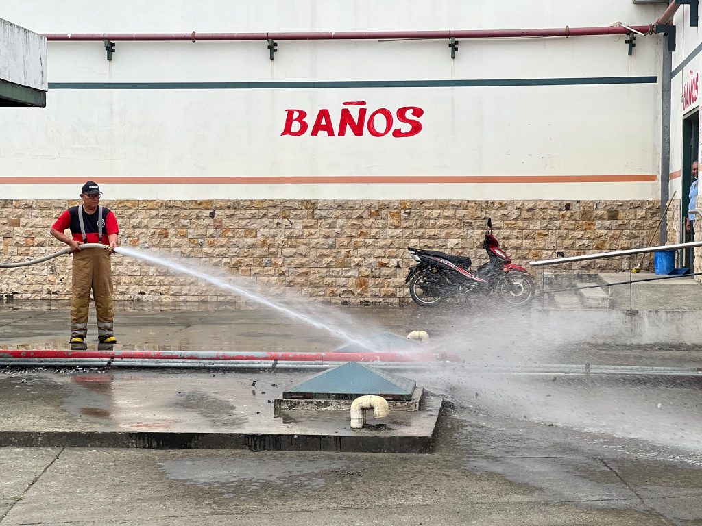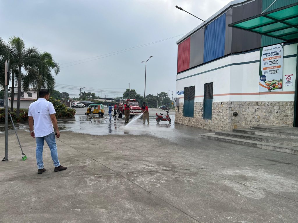 Mediante el trabajo conjunto entre la Comisaría Municipal y Cuerpo de Bomberos, llevamos a cabo una exitosa jornada de limpieza en la parte externa del Mercado Municipal.