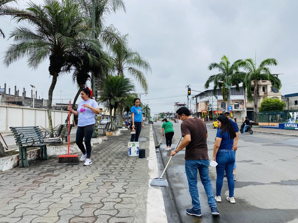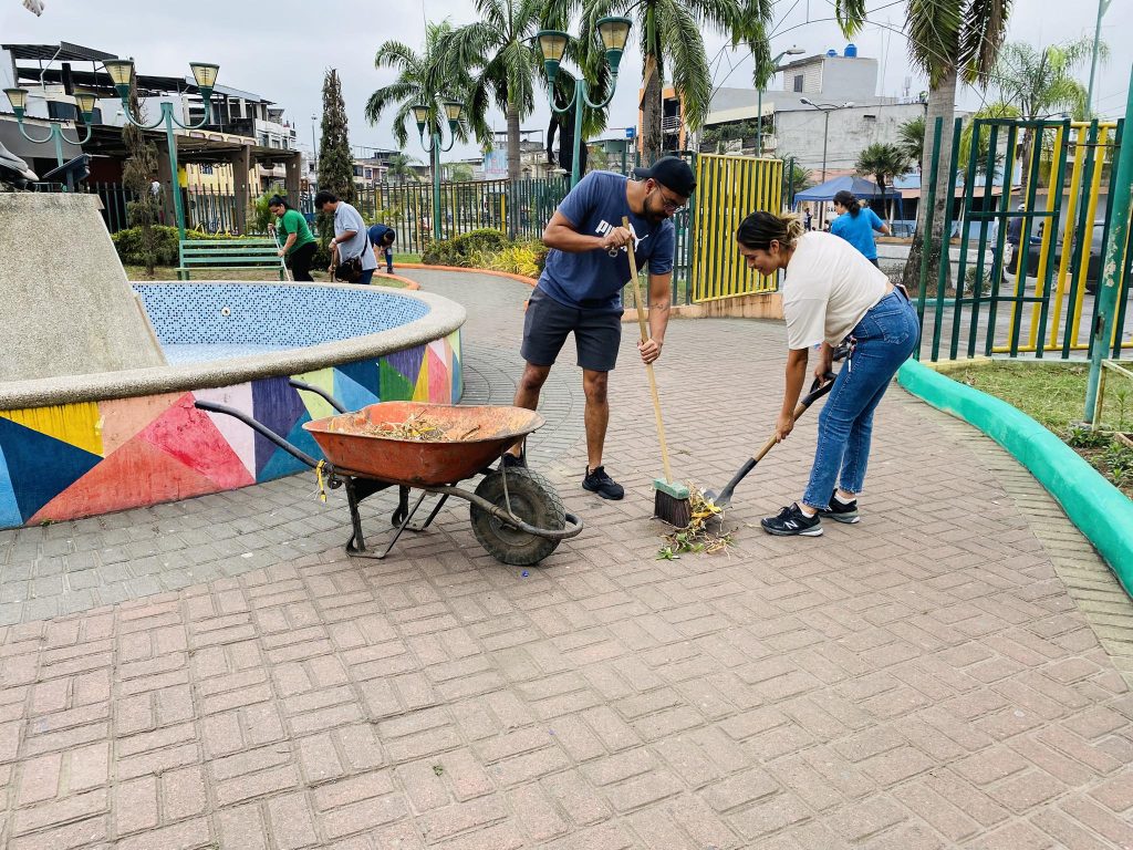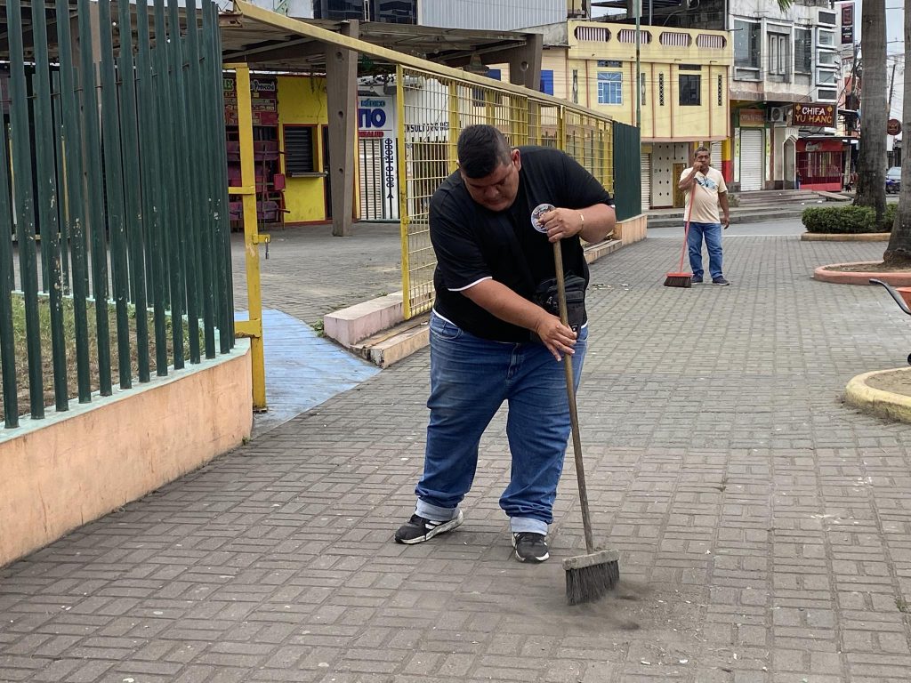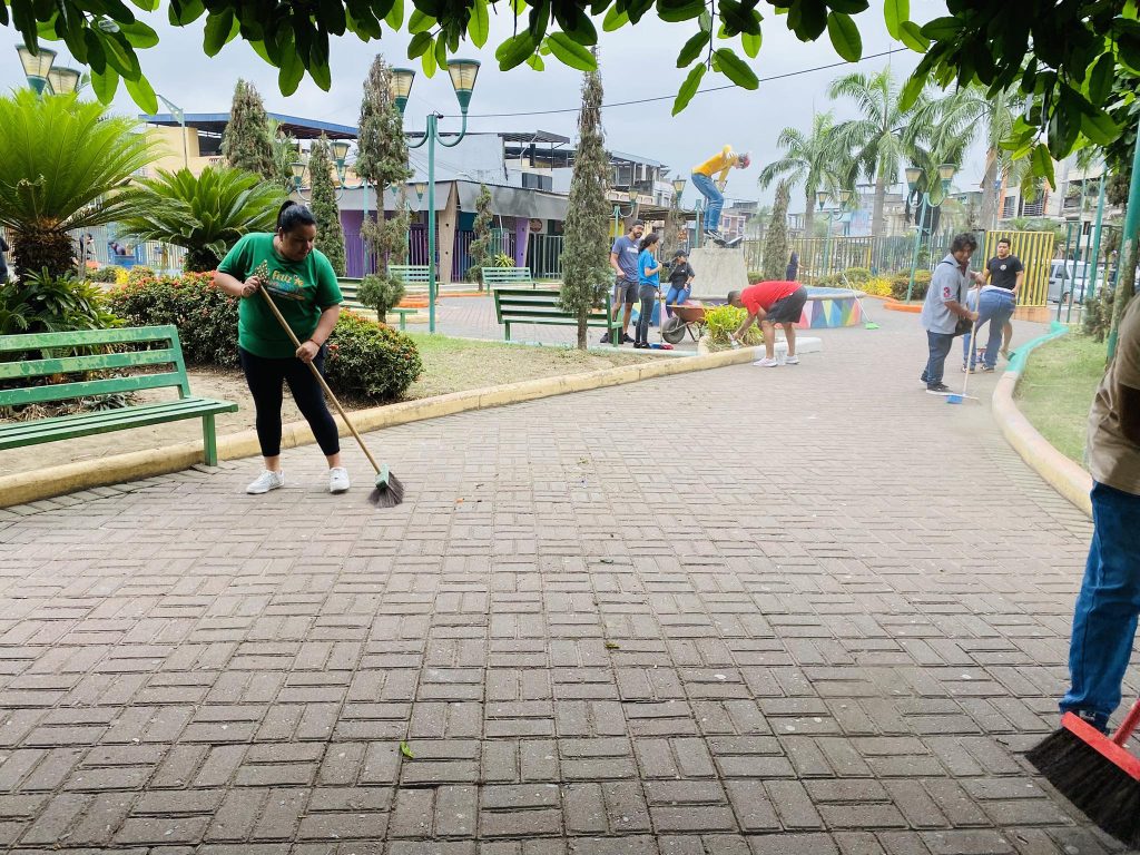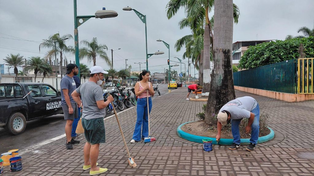Durante la minga, el personal operativo del GAD Municipal de Naranjito ejecutó labores de barrido general, recolección de residuos, desbroce de maleza y adecuación de áreas comunes, contribuyendo al mejoramiento integral del entorno.