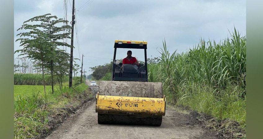 En esta ocasión, se está llevando a cabo la reconformación vial desde el recinto Alegría hasta el recinto Siempre Viva.