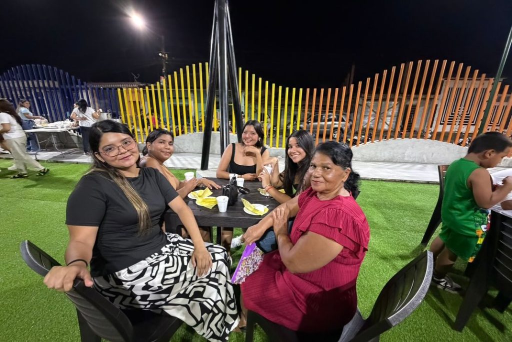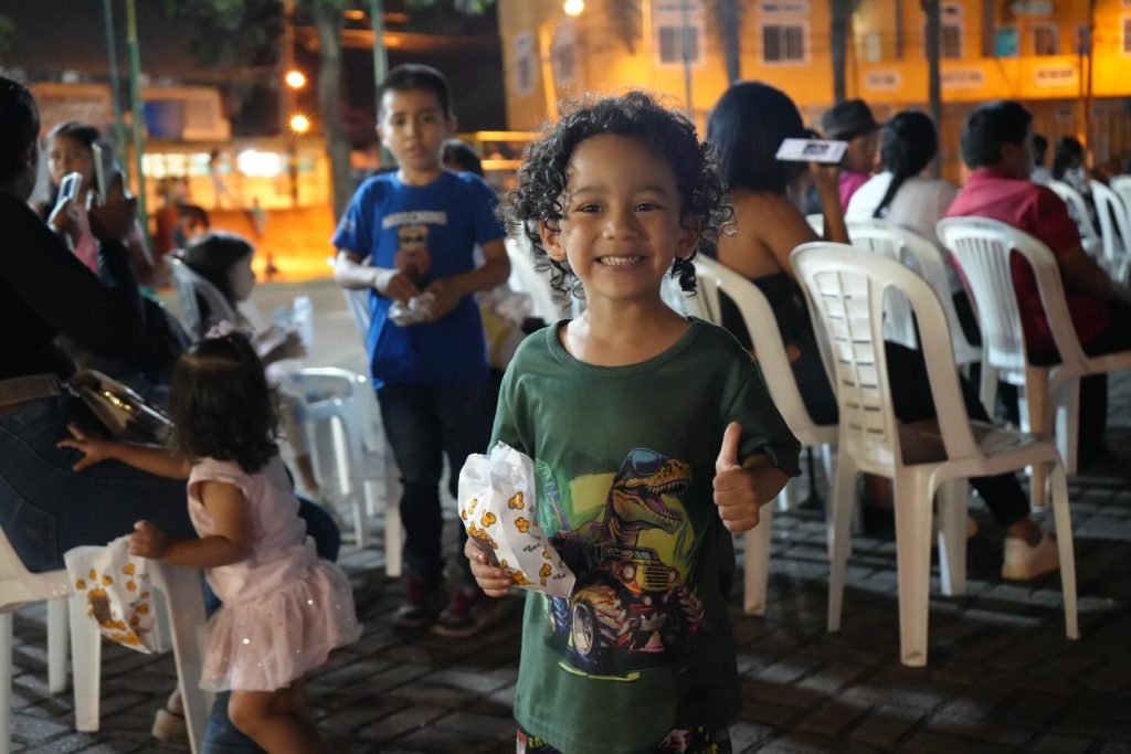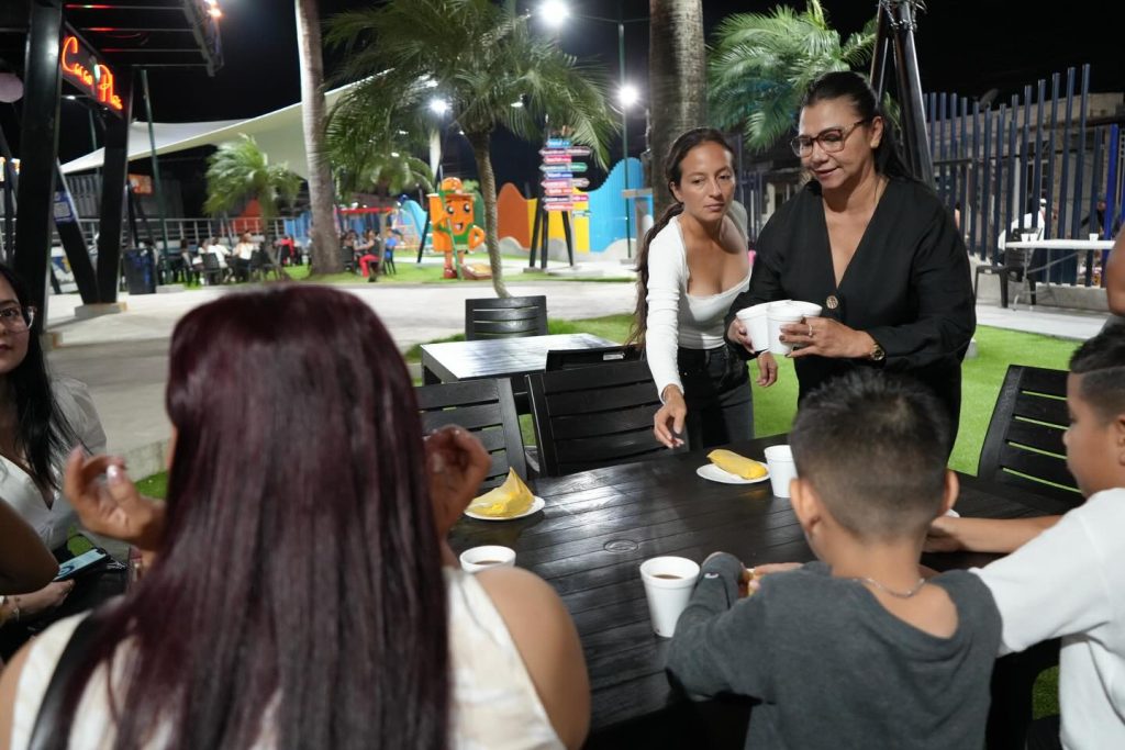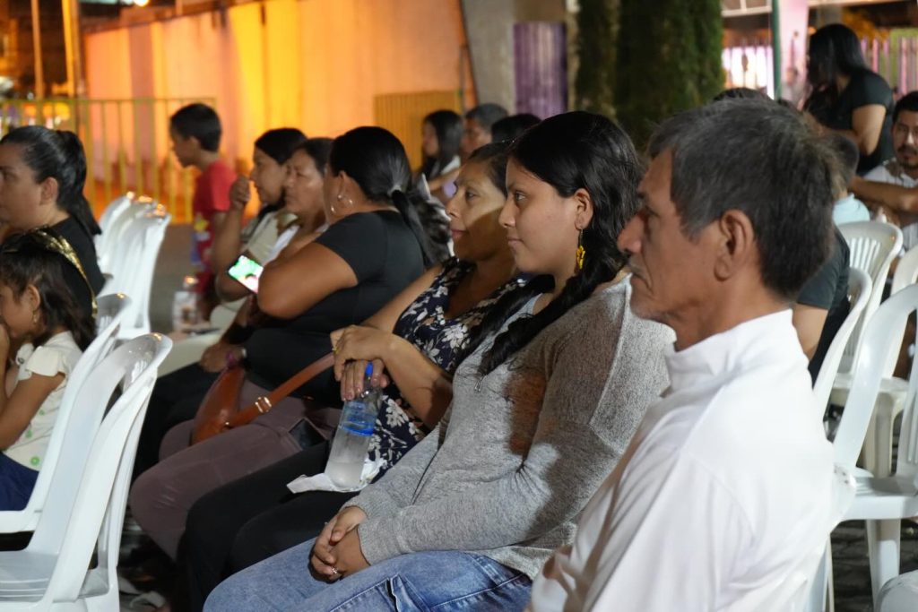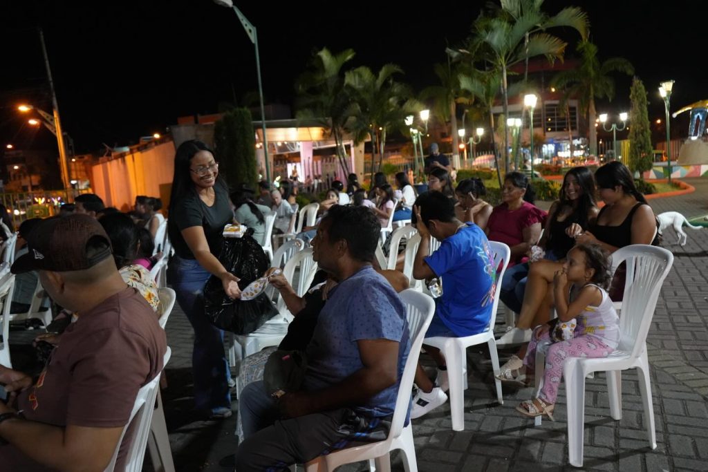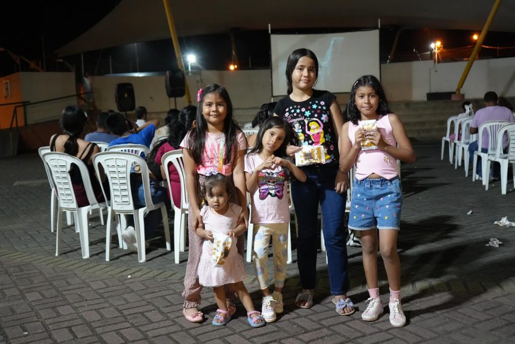 La noche inició con una velada especial en la pista de patinaje, donde las familias se dieron cita para disfrutar de una función de cine al aire libre. El ambiente estuvo lleno de alegría y reflexión, con niños, jóvenes y adultos compartiendo un momento distinto en unión.
